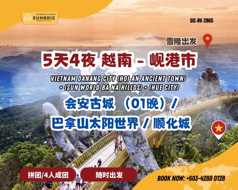 5天4夜 精彩越南之旅:会安古城 + 巴拿山太阳世界 + 顺化市